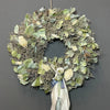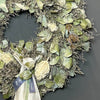 Designed in a soft palette of whites and greens, this beautiful wreath is lovingly made using carefully selected dried eucalyptus, limonium, and thistle. Each element is thoughtfully arranged to create a harmonious balance of texture and color, giving the wreath its rustic yet refined appeal. Finished with a stunning ribbon, it makes an eye-catching statement on any door, wall, or interior space.